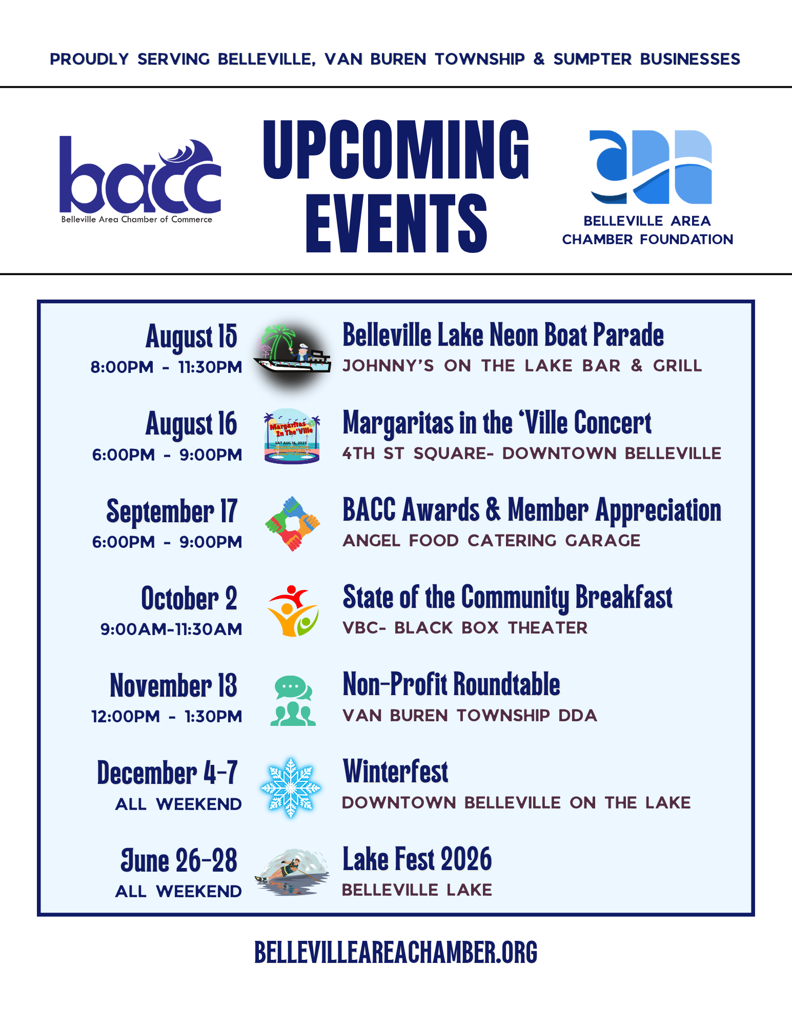 Whether you’re a local business owner, a resident, or a visitor, you’ll find valuable information and support here. The Belleville Area Chamber partners with Belleville, Sumpter Township, Van Buren Township, Van Buren Public Schools and our members and member organizations to the benefit of its members and broader community. Your involvement and support are what makes the 48111 a wonderful place to live, work, and play.